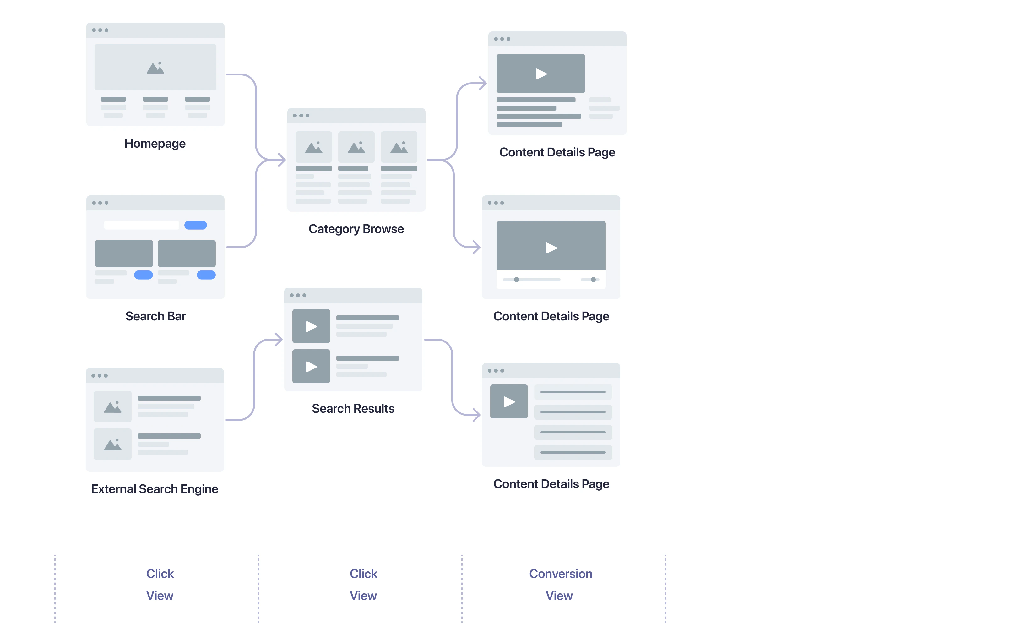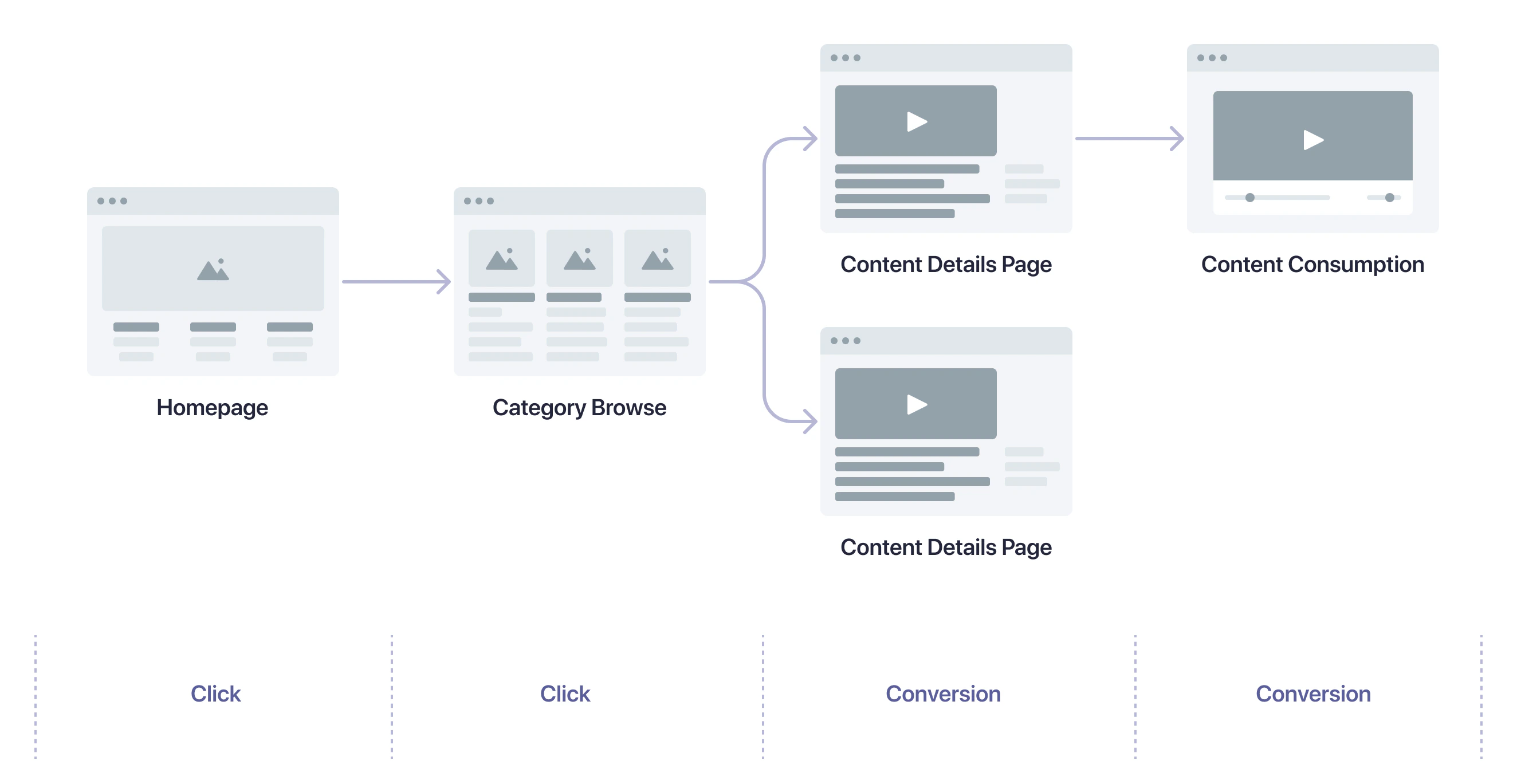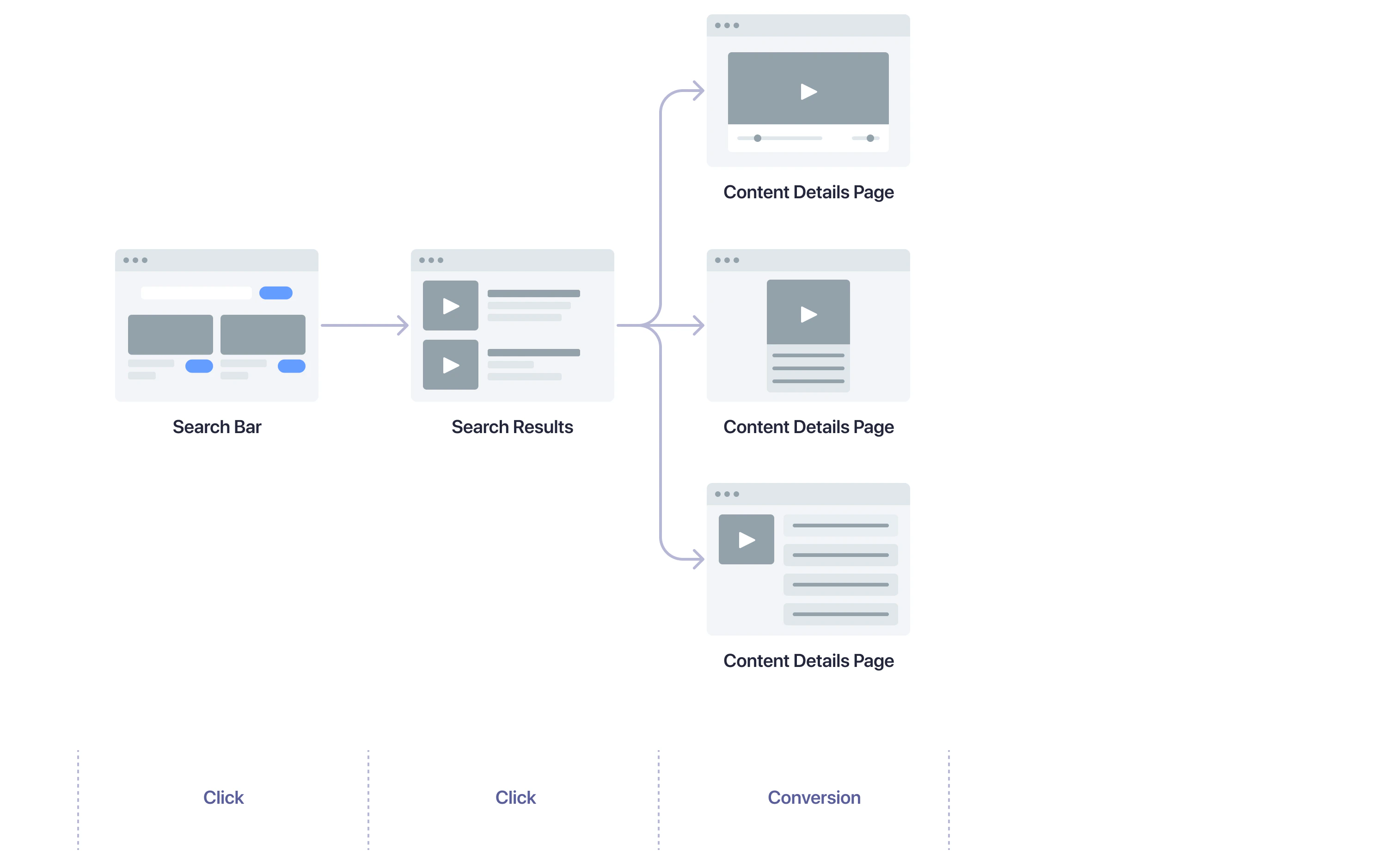 Click events capture when users indicate they want to view specific pieces of content. Add the following code to track a user navigating to a piece of content from a search results page:JavaScript